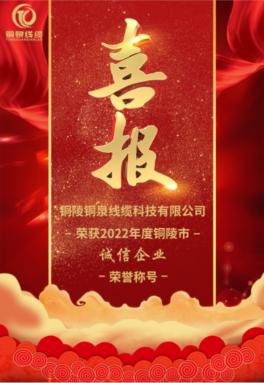 誠信是企業(yè)立足之本,更是企業(yè)發(fā)展之根。為認真貫徹落實市委市政府關于打造“信用銅陵”的部署要求,市信用辦發(fā)布《關于開展銅陵市“誠信企業(yè)”評選活動的通知》,正式啟動了2022年度“銅陵市誠信企業(yè)”評選活動。本次活動按照從嚴從實、重質重效的原則,經企業(yè)申報、資格審核、行業(yè)推薦、數據核實、信用審查、綜合評估、社會公示等程序評選出信用制度健全、經營管理規(guī)范、社會責任落實、公眾評價優(yōu)良,在全市具有示范作用的企業(yè),銅陵銅泉線纜科技有限公司成功上榜,再度蟬聯銅陵市“誠信企業(yè)”榮譽稱號。